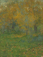 In paintings like “Wooded Landscape” (c.1900), “Autumn” (c.1900) or “Sunset on Poplars” (c.1900) he challenged himself to paint a large clump of trees in fast-fading light. In these works, the outline of things begins to blur, and you feel as if you are becoming part of the landscape yourself.
